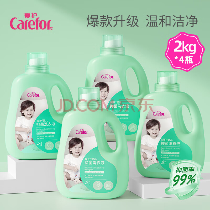 商品相册:爱护(Carefor)婴儿儿童洗衣液0-3岁新生儿抑菌洗衣液宝宝多效抑菌4瓶16斤第