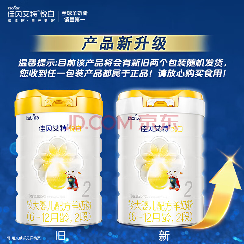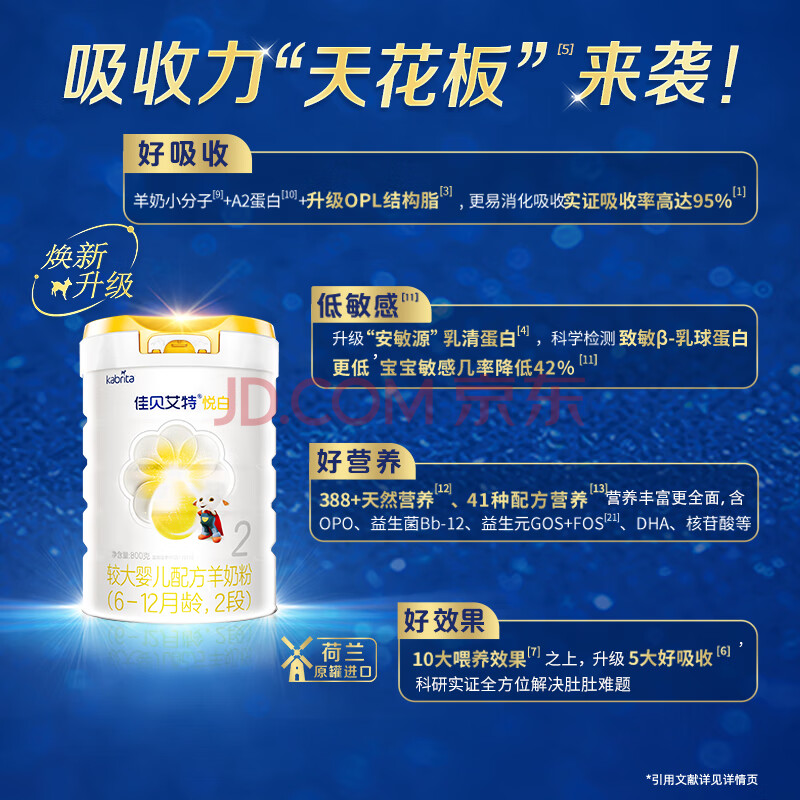商品相册:佳贝艾特(Kabrita)悦白较大婴儿配方羊奶粉 2段(6-12个月)800克 天然A2蛋白第
