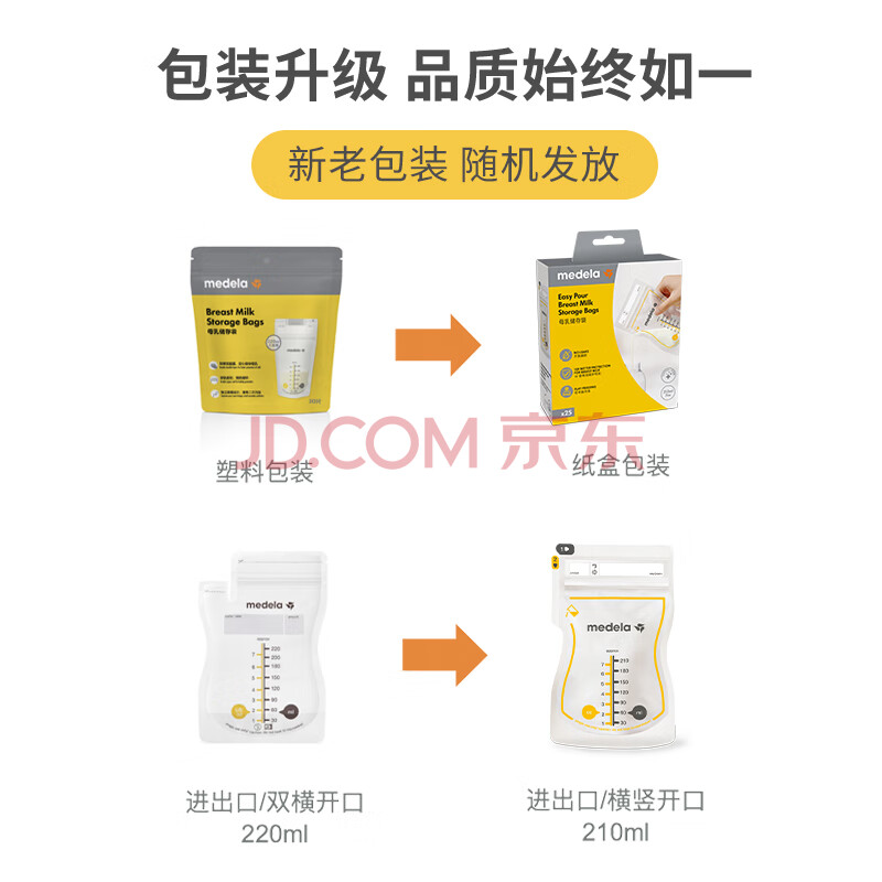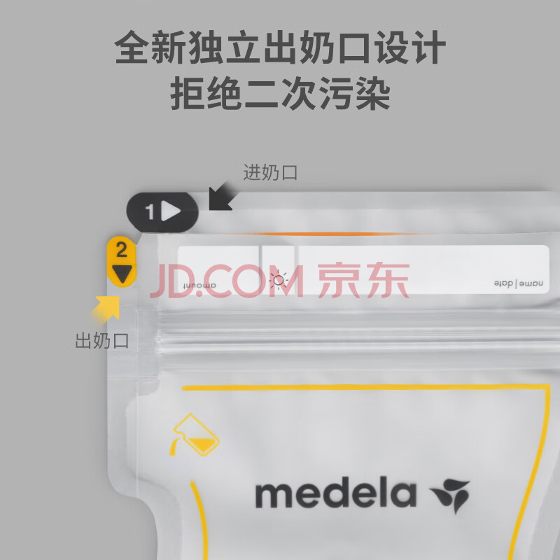商品相册:美德乐(Medela)储奶袋存奶袋母乳储存保鲜一次性奶袋180ml*50片/盒第