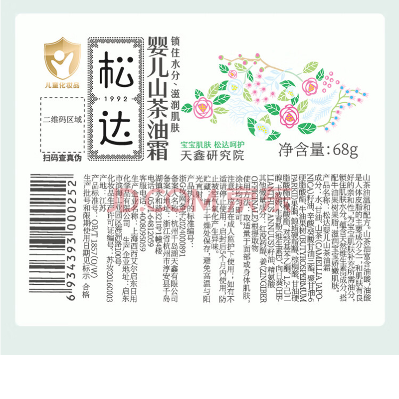 商品相册:松达儿童面霜宝宝护肤保湿婴儿面霜润肤滋润山茶油霜68g第