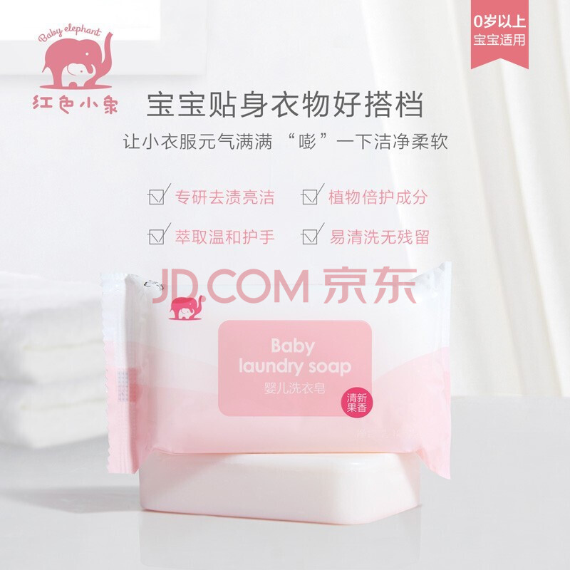 商品相册:红色小象 婴儿0-12个月宝宝儿童洗衣专用肥皂内衣皂婴儿洗衣皂120g*6第