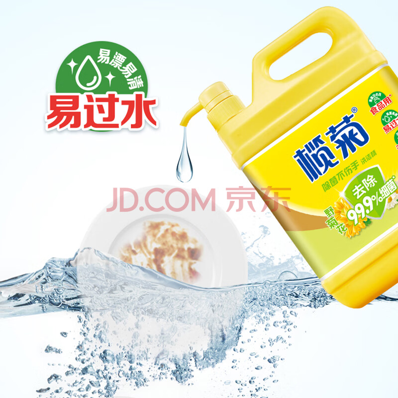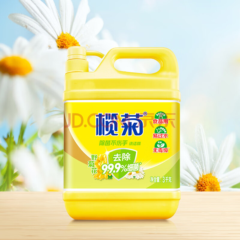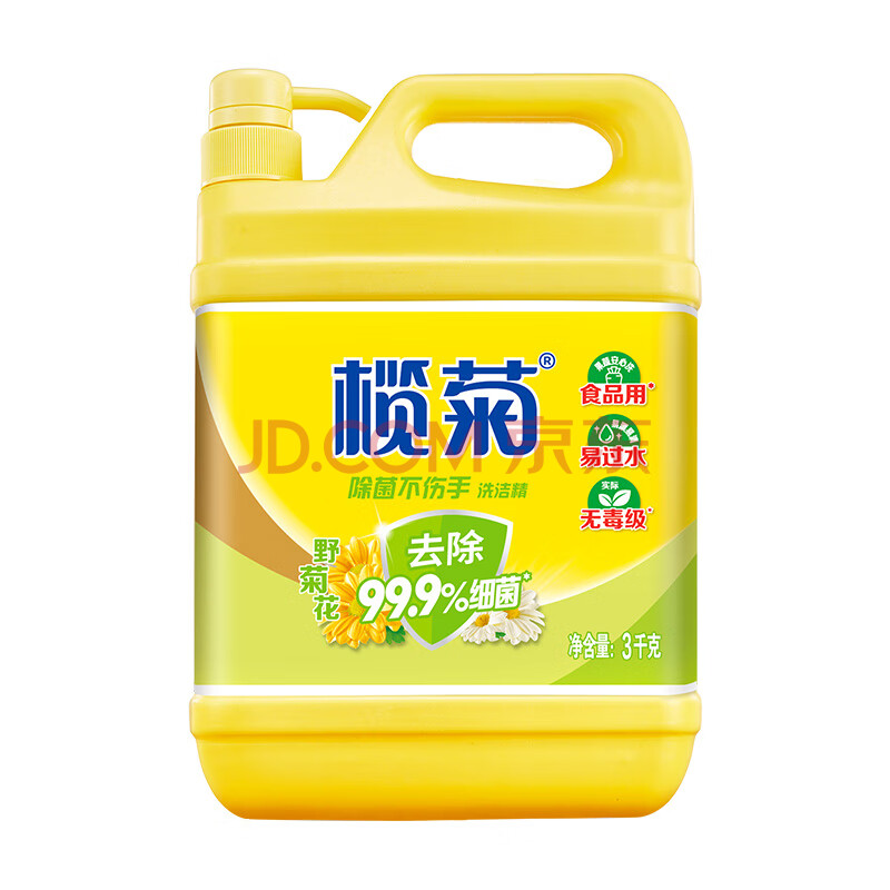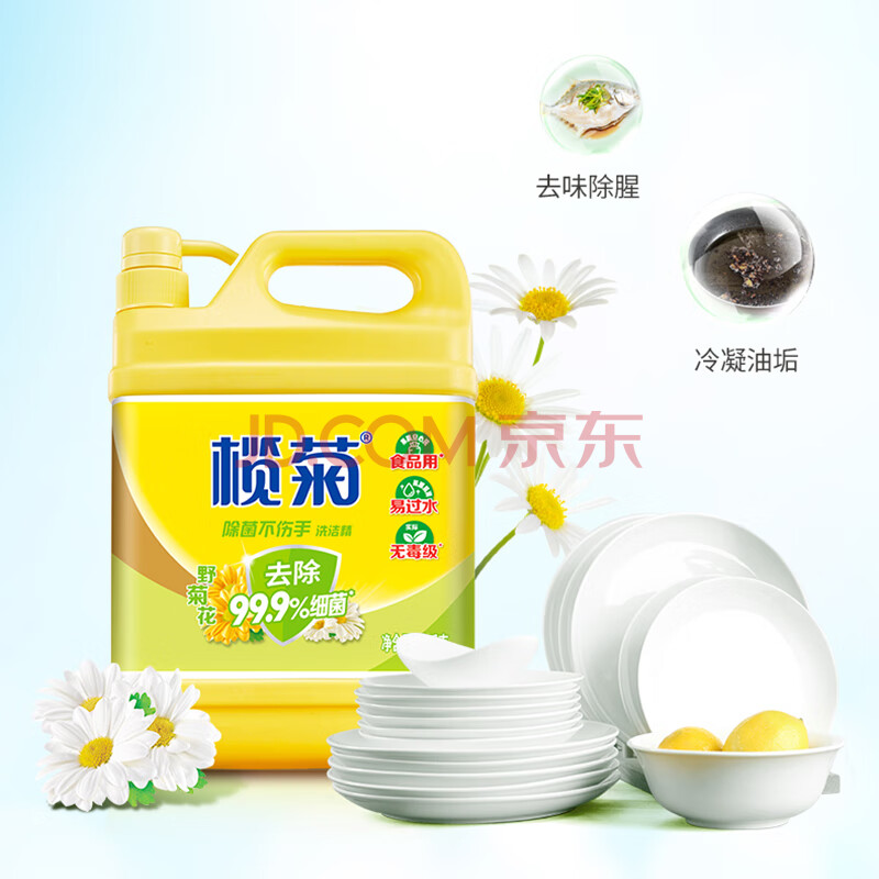 商品相册:榄菊不伤手洗洁精3kg野菊花除菌99%厨房洗碗餐具净洗涤灵食品用级别第