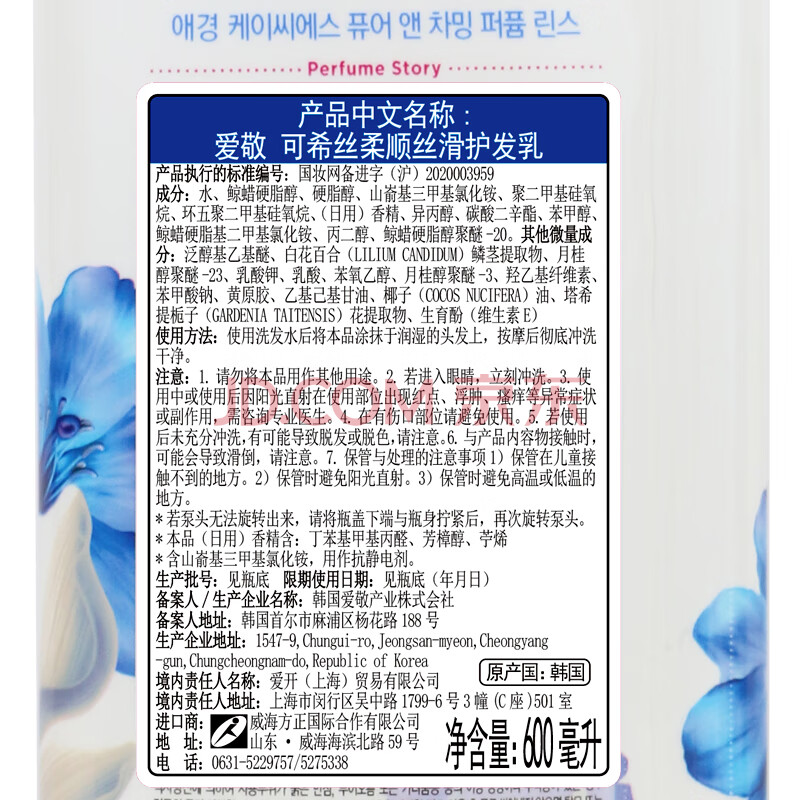 商品相册:爱敬柔顺丝滑护发素600ml头皮清爽男女士进口护发润发乳健康柔顺留香第