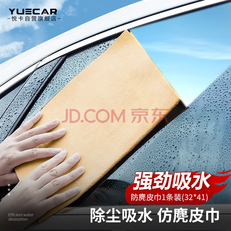 商品相册:悦卡合成鹿皮巾麂皮巾洗车鸡皮擦车布强力吸水擦车毛巾-黄色小号1条装第
