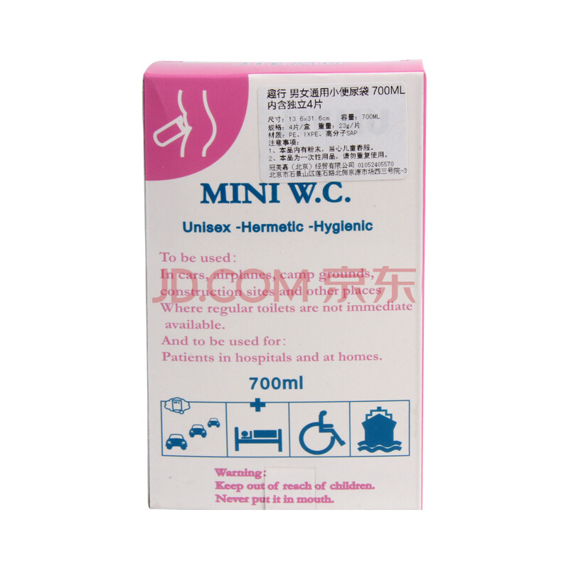 商品相册:趣行700ml密封尿袋 一次性车用应急小便尿袋男女通用 4片装第