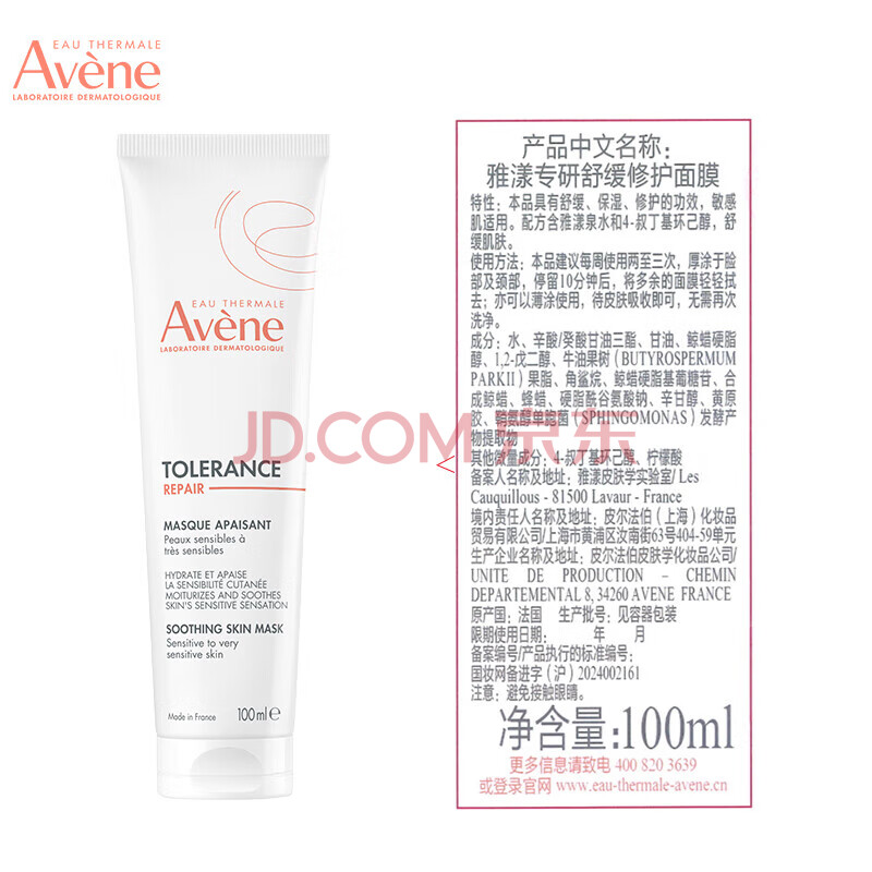 商品相册:雅漾(Avene)【樊振东同款】专研舒缓修护面膜100ml 芙蓉蜜免洗涂抹面膜礼物第