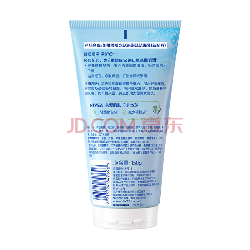 商品相册:妮维雅(NIVEA)凝水活采泡沫洁面乳加量装150g洗面奶保湿补水清洁毛孔第