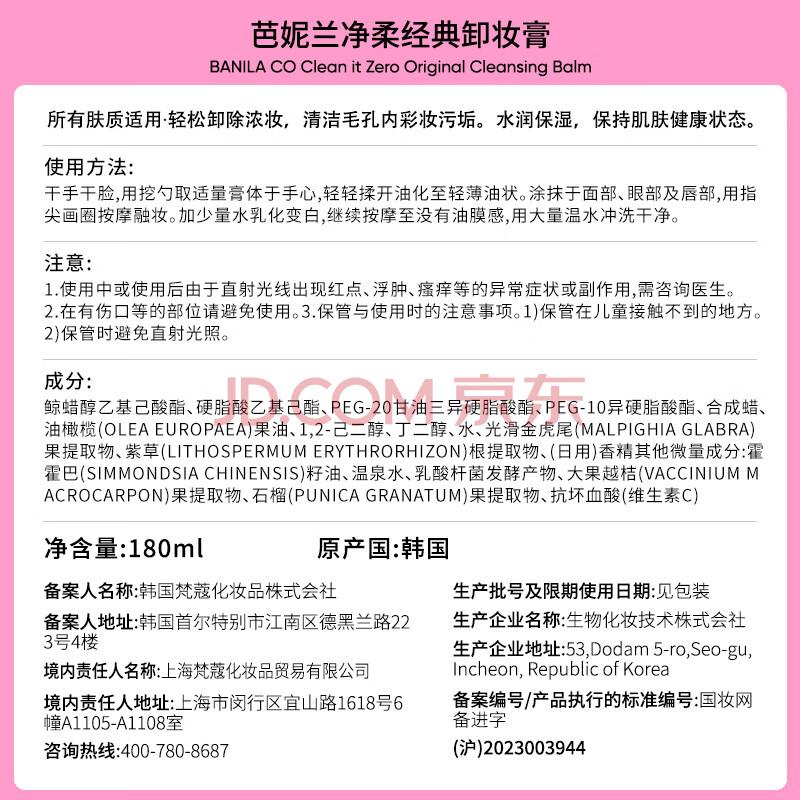 商品相册:芭妮兰(banila co)zero卸妆膏经典款180ml 小粉罐PRO 秒乳化脸部眼唇卸 女神节礼物第