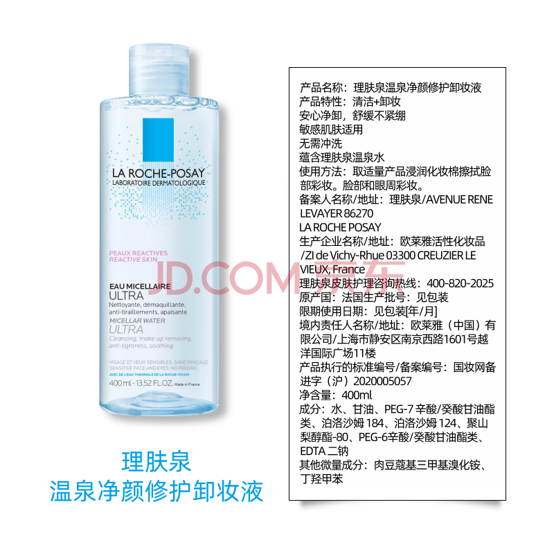 商品相册:理肤泉温泉净颜卸妆液400ml面部眼唇卸妆水深层清洁温和卸妆生日礼物第