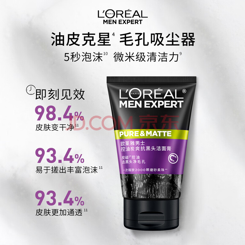 商品相册:欧莱雅男士专用抗黑头洁面100ml*2控油祛痘去角质洗面奶护肤品第