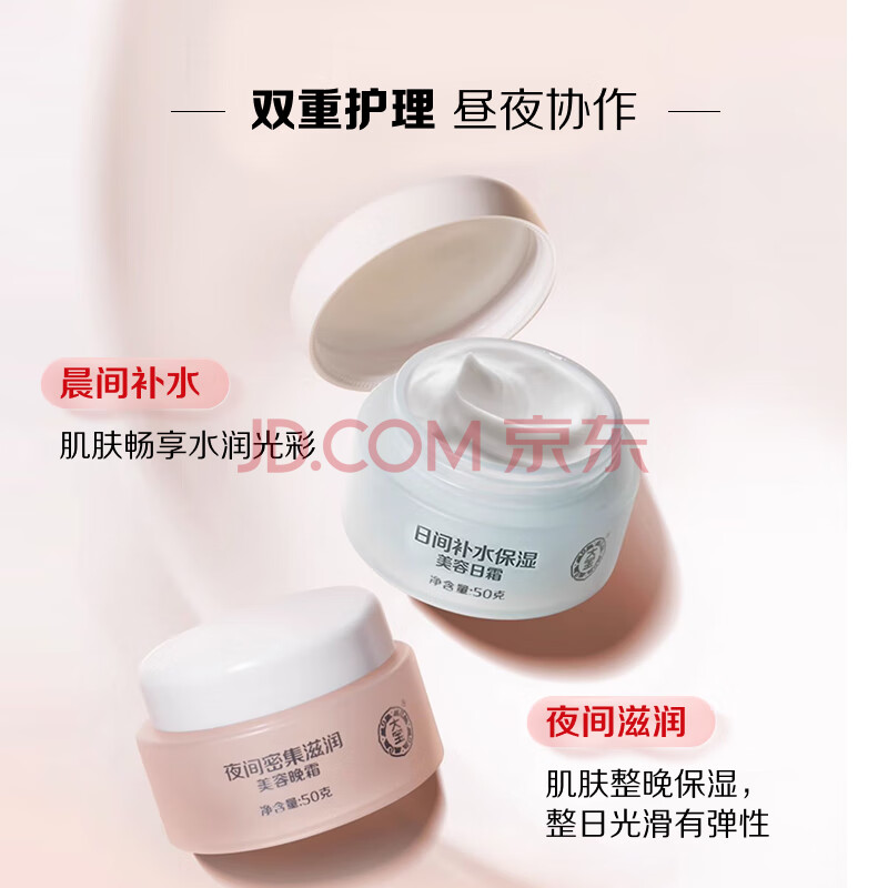 商品相册:大宝美容日霜50g+晚霜50g套装补水保湿面霜日滋夜养护肤品第