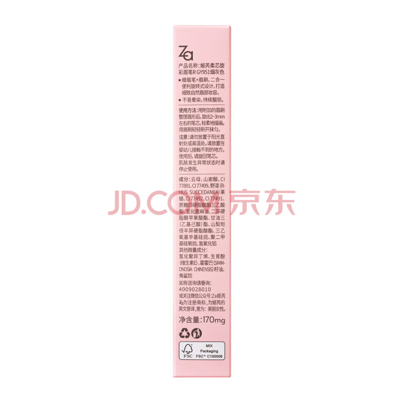 商品相册:姬芮(ZA)烟灰色柔芯旋彩眉笔 0.17g (持妆 防水防汗防晕染 双头)礼物第