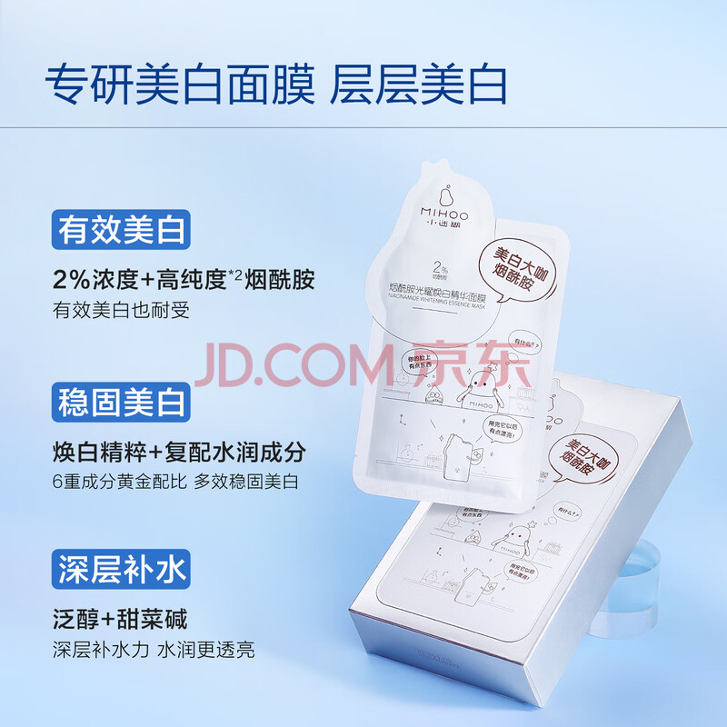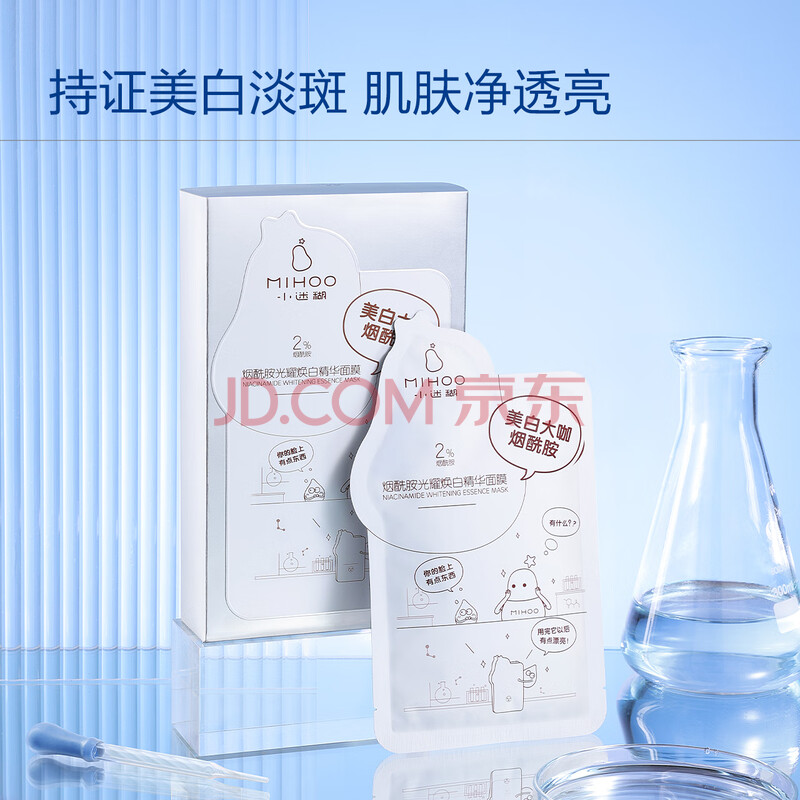 商品相册:小迷糊烟酰胺美白面膜20片美白淡斑补水保湿提亮改善暗沉男女护肤品第