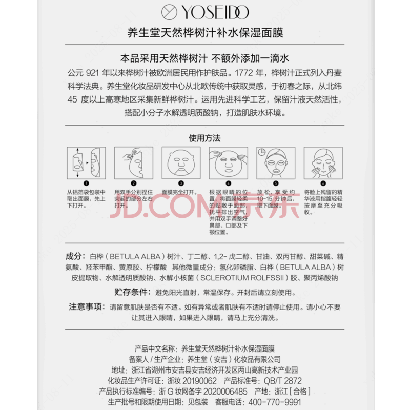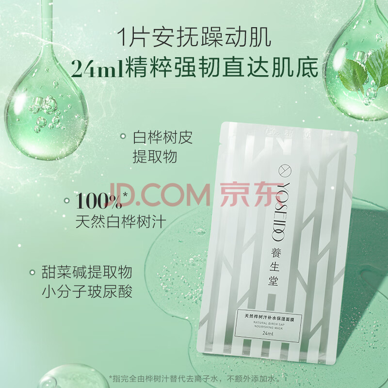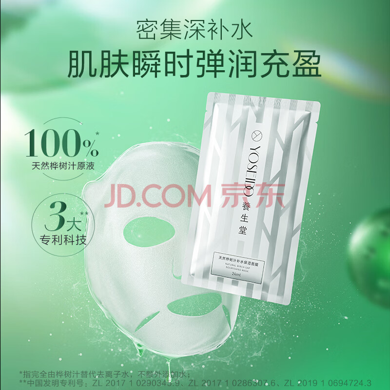 商品相册:养生堂天然桦树汁补水保湿面膜5片装 深透修护敏肌适用节日礼物送男女生第