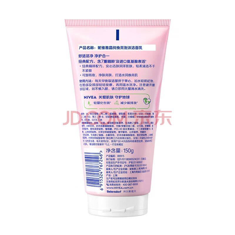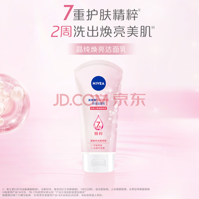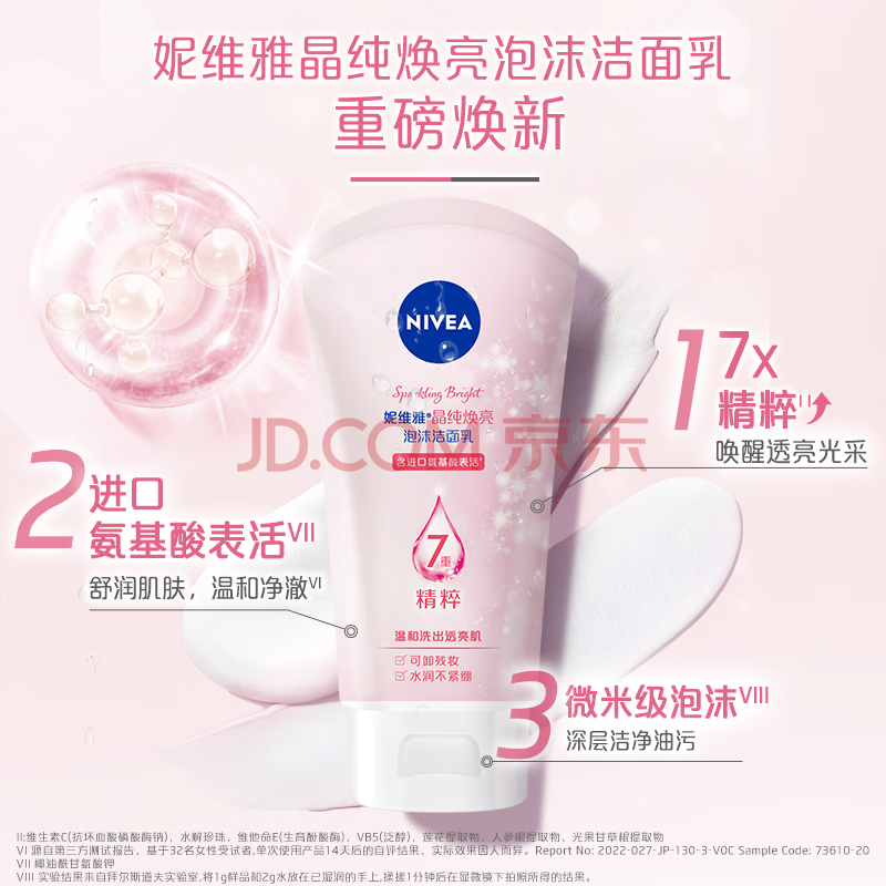 商品相册:妮维雅(NIVEA)温和滋润洗面奶晶纯焕亮泡沫洁面乳150g加量装礼物送女生第