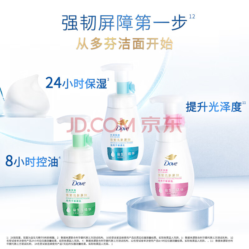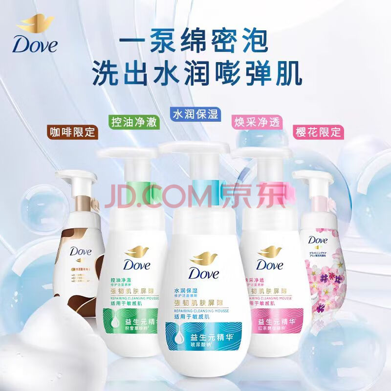 商品相册:多芬保湿洁面泡泡160ml 氨基酸洗面奶敏感肌深层清洁水润第
