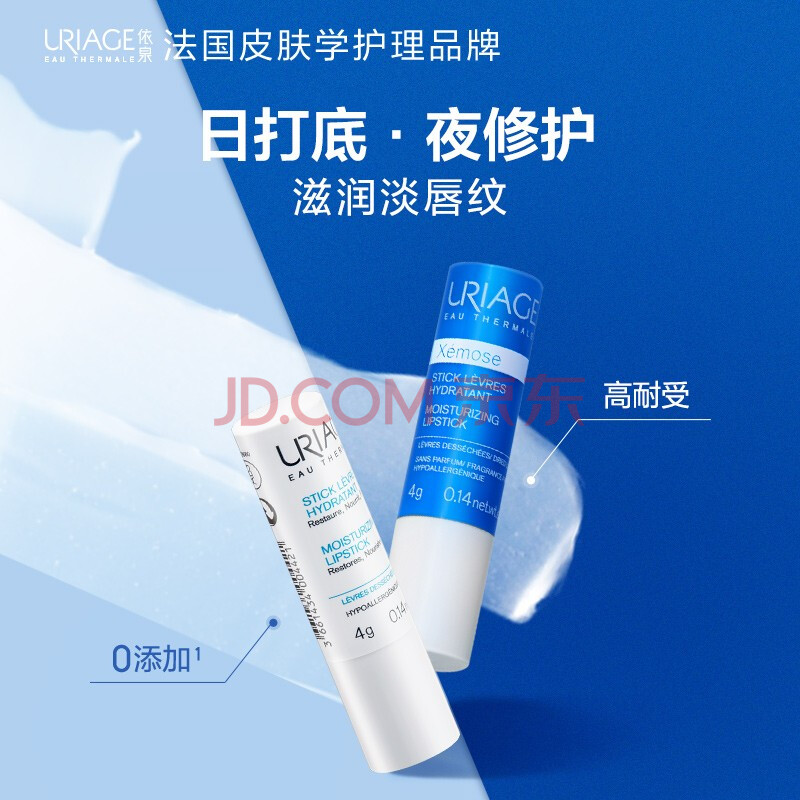 商品相册:依泉(Uriage)润唇膏日夜修护2件套滋润保湿淡唇纹口红打底 法国原装进口第