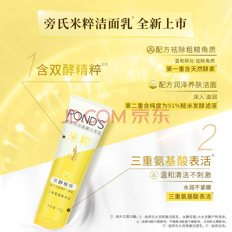 商品相册:旁氏(POND'S)米粹润泽保湿洁面乳120g 氨基酸洗面奶男女去角质第