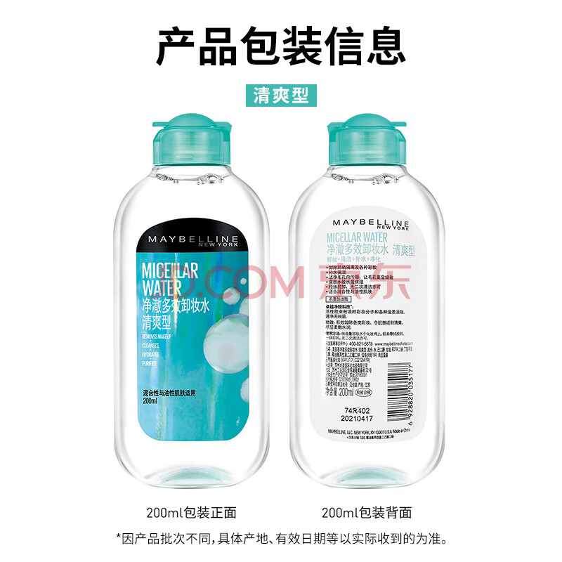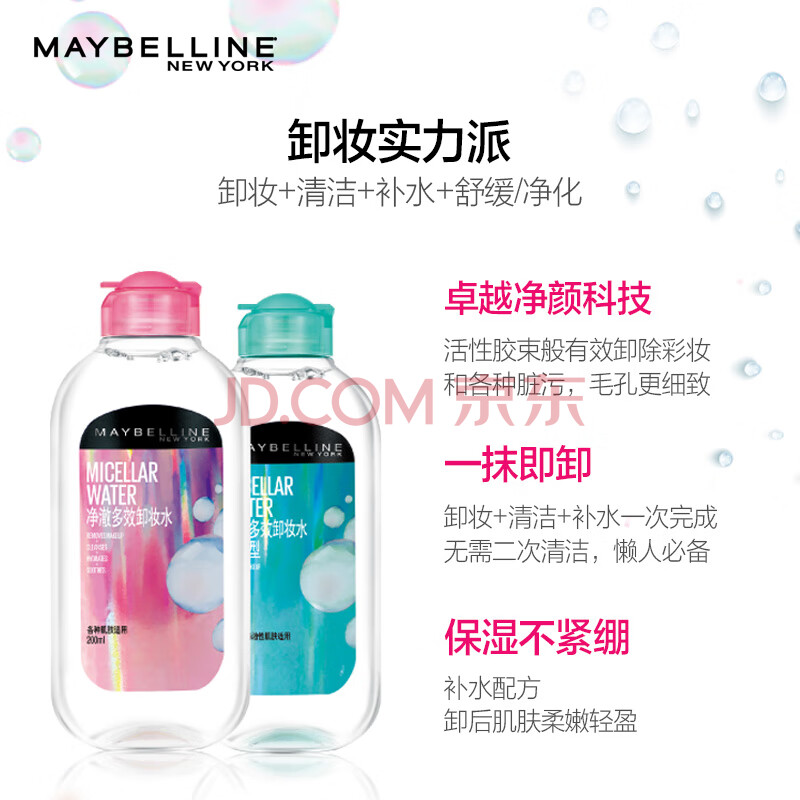 商品相册:美宝莲净澈多效卸妆水绿瓶清爽200ml油皮混合皮深层清洁生日礼物女第