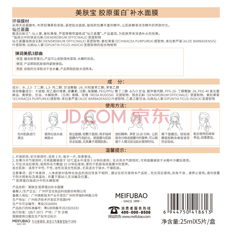 商品相册:美肤宝胶原蛋白补水面膜25g*20片熬夜保湿弹润妆前补水保湿护肤品第