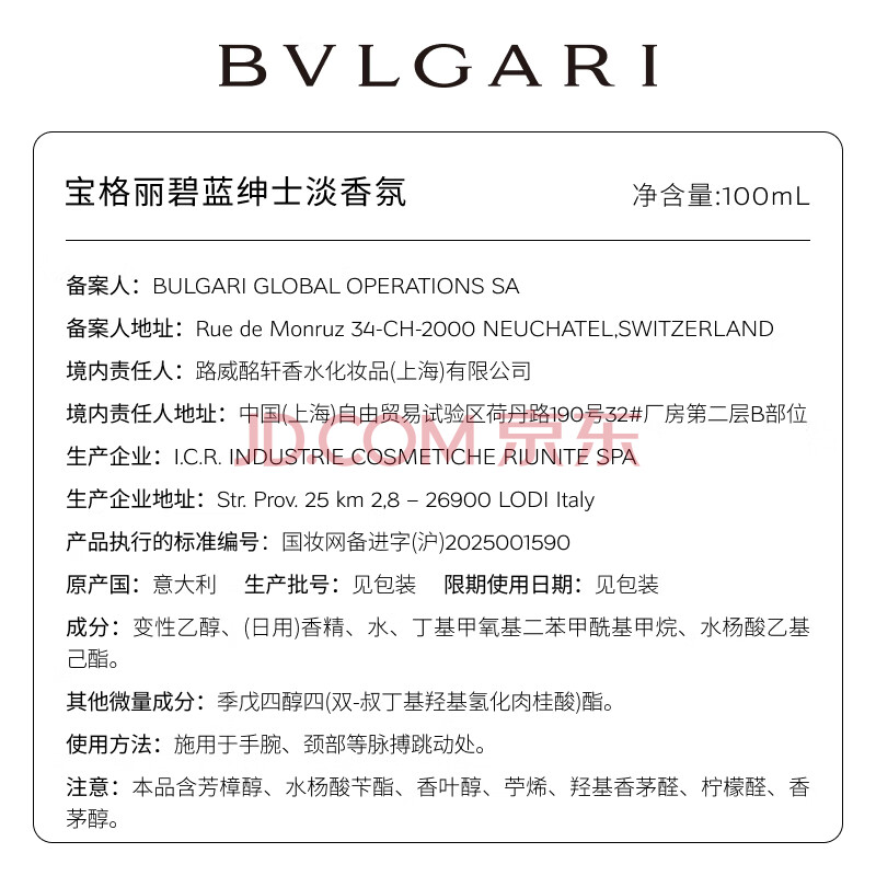 商品相册:宝格丽(BVLGARI)碧蓝淡香氛100ml海洋调男士生日礼物礼盒送男友送男生第