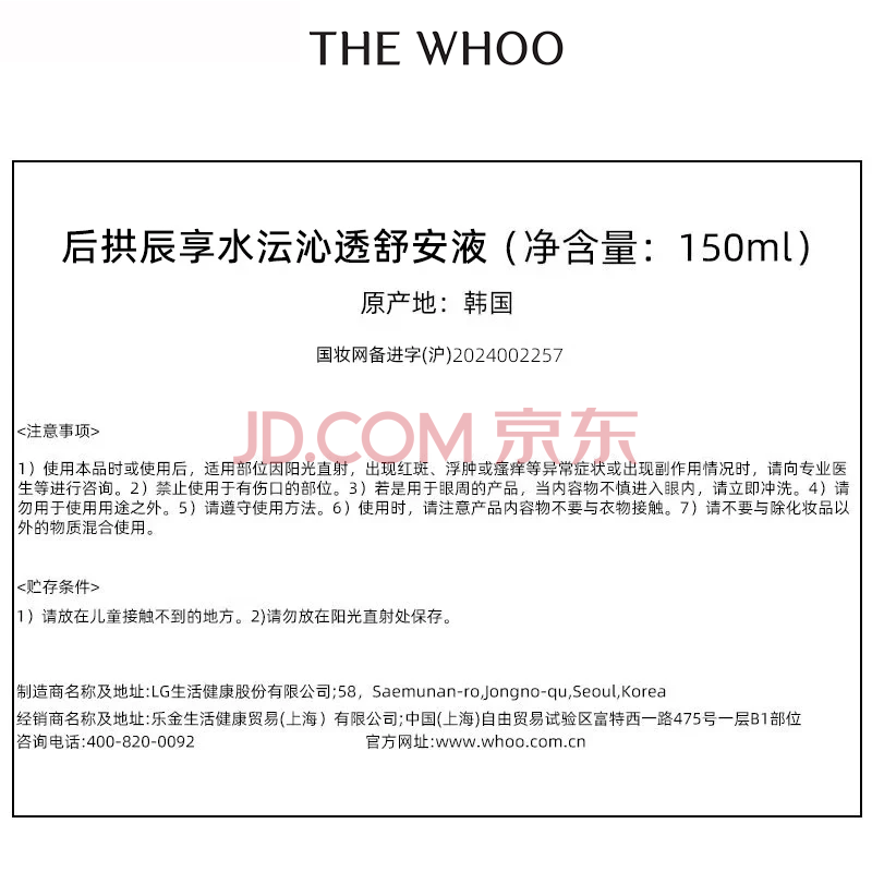 商品相册:后Whoo【黄星同款】拱辰享水沄沁透舒安液150ml补水保湿护肤爽肤水第