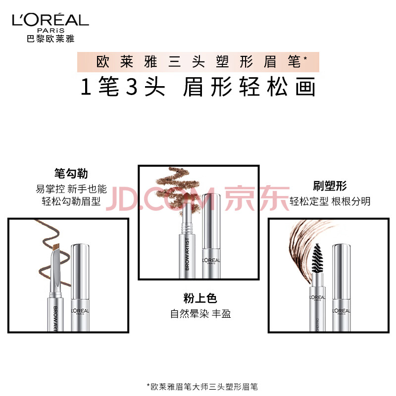 商品相册:欧莱雅眉笔大师三头塑形眉笔浅棕持妆不晕染自然勾勒生日礼物送女友第
