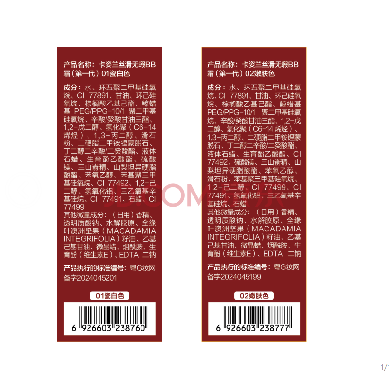 商品相册:卡姿兰(Carslan)丝滑无瑕BB霜妆前隔离控油遮瑕保湿02#嫩肤色 48g 生日礼物送女生第
