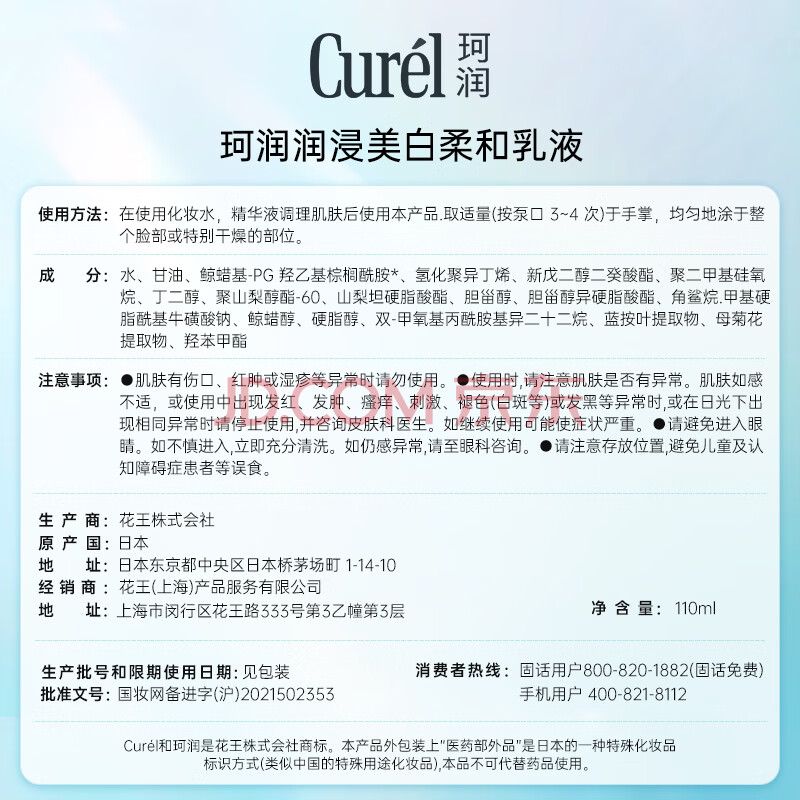 商品相册:珂润(Curel)美白柔和乳液110ml 神经酰胺保湿补水敏感肌男女护肤化妆生日礼物第