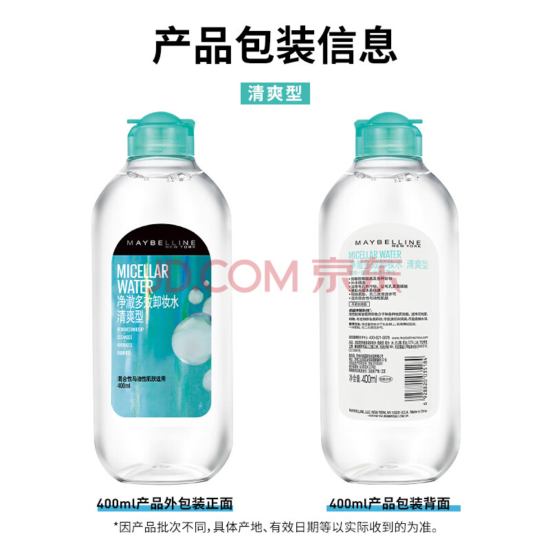 商品相册:美宝莲净澈多效卸妆水 绿瓶 清爽型400ml 油皮混合皮清洁 生日礼物女第