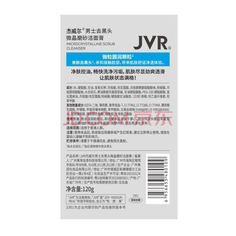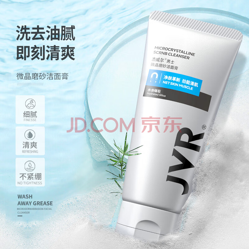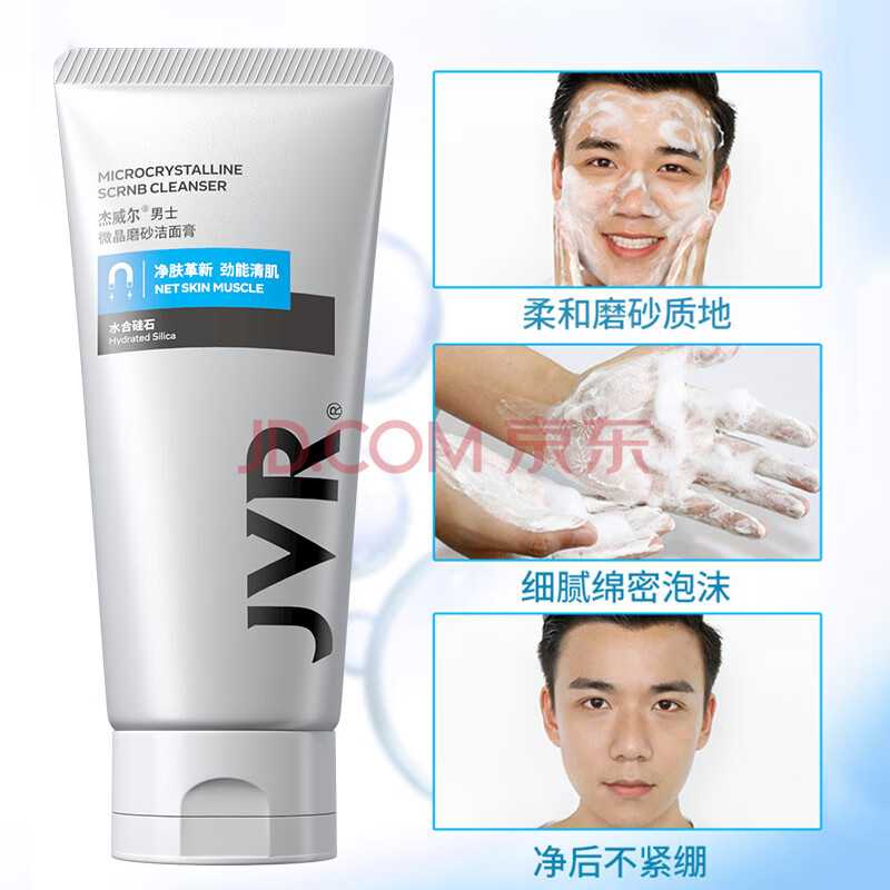 商品相册:杰威尔男士微晶磨砂洁面膏 清洁去黑头控油洗面奶清爽不紧绷男女120g*2第