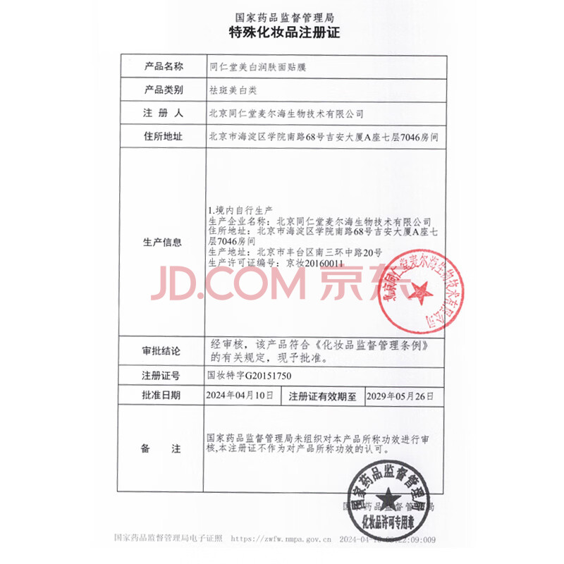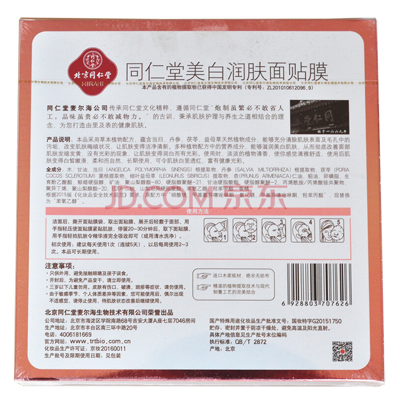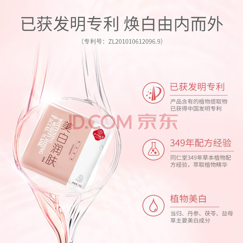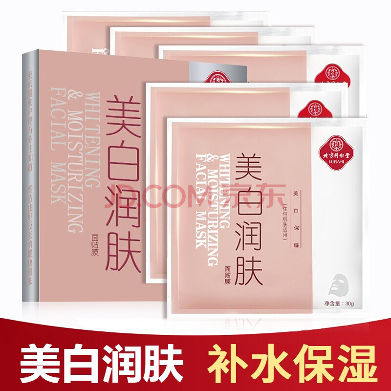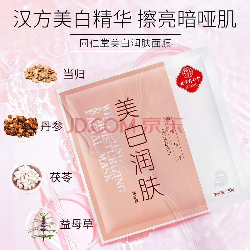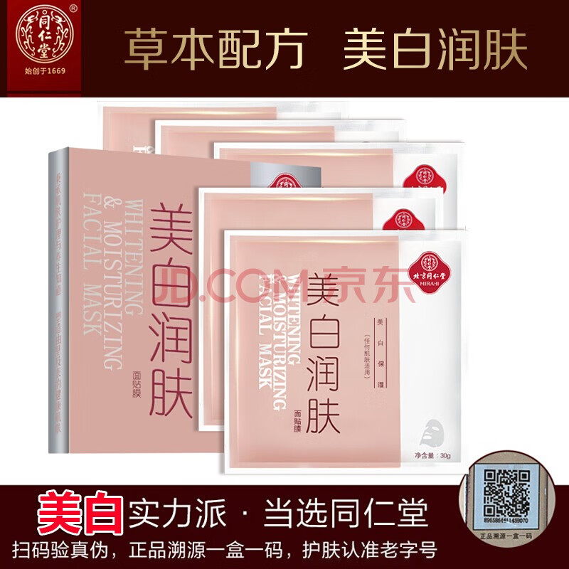 商品相册:同仁堂美白润肤面膜30g*5片/盒 淡斑祛斑提亮补水保湿草本成分第