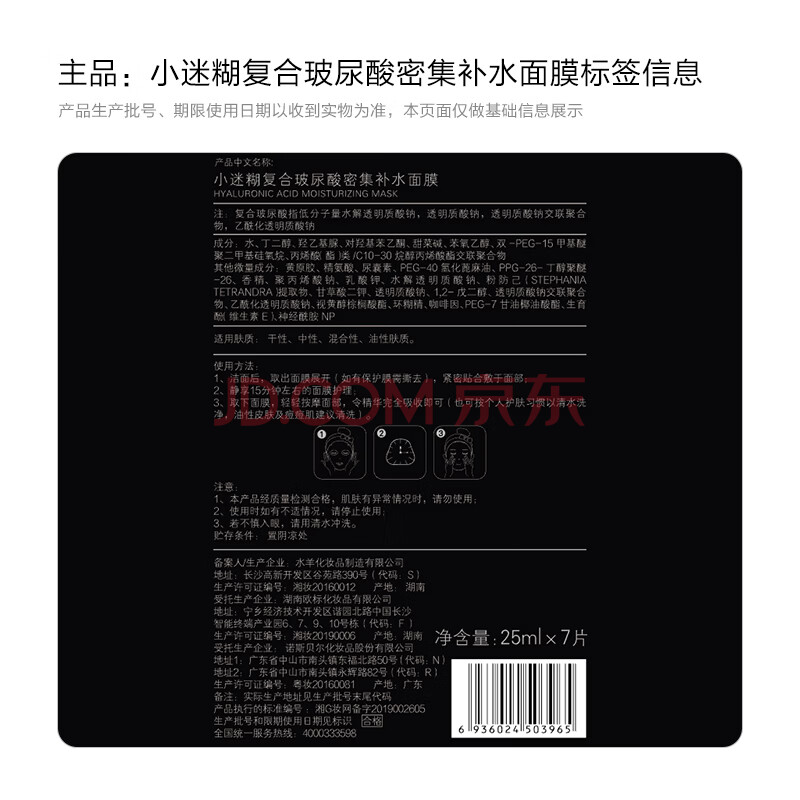 商品相册:小迷糊密集玻尿酸补水面膜贴21片补水保湿男女士学生护肤品第