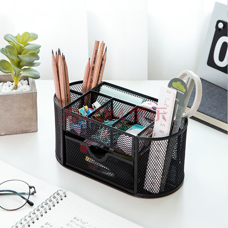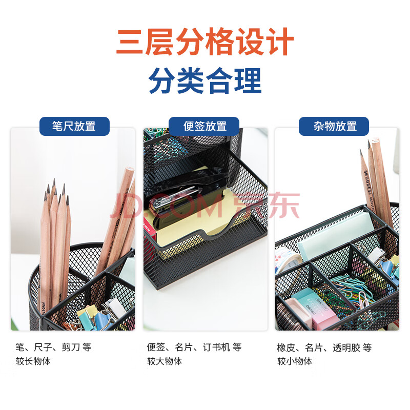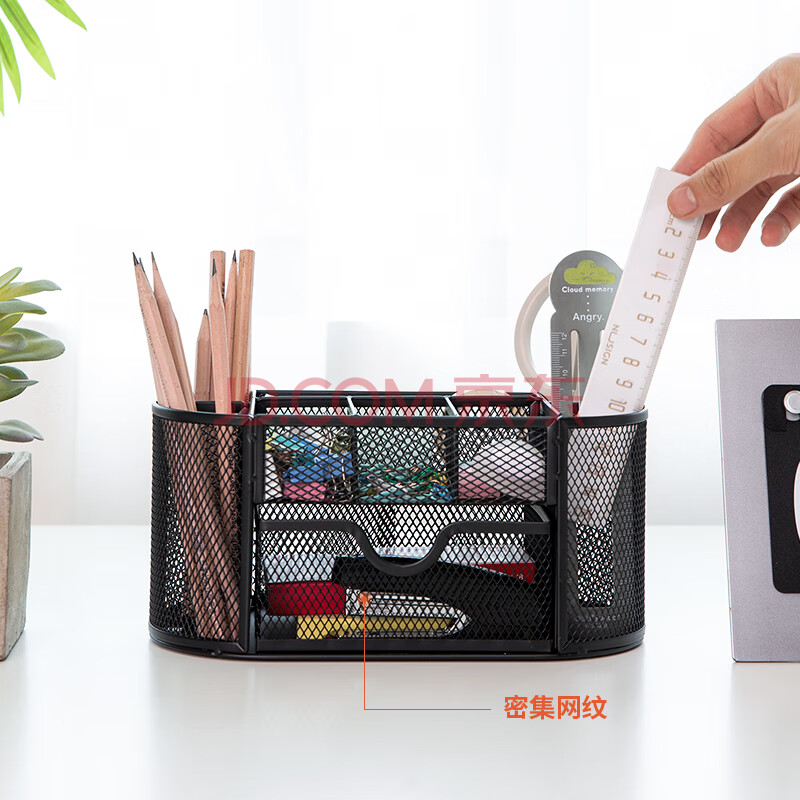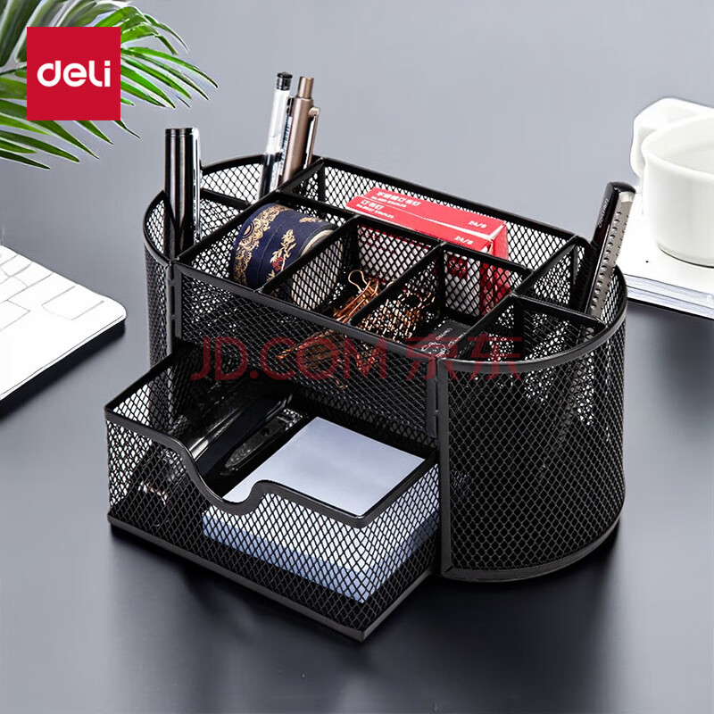 商品相册:得力(deli)多功能九格组合笔筒 金属网办公桌面收纳盒 办公用品 黑色8902第