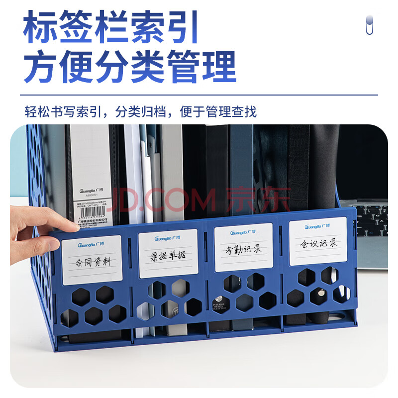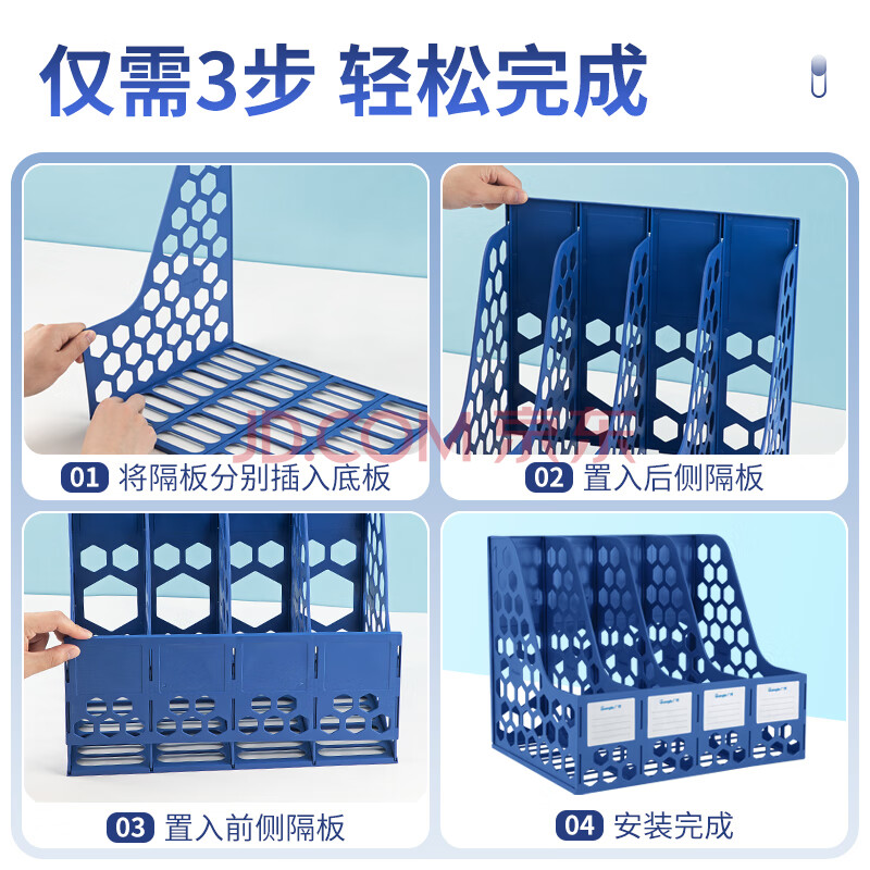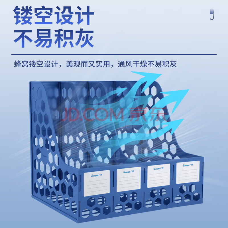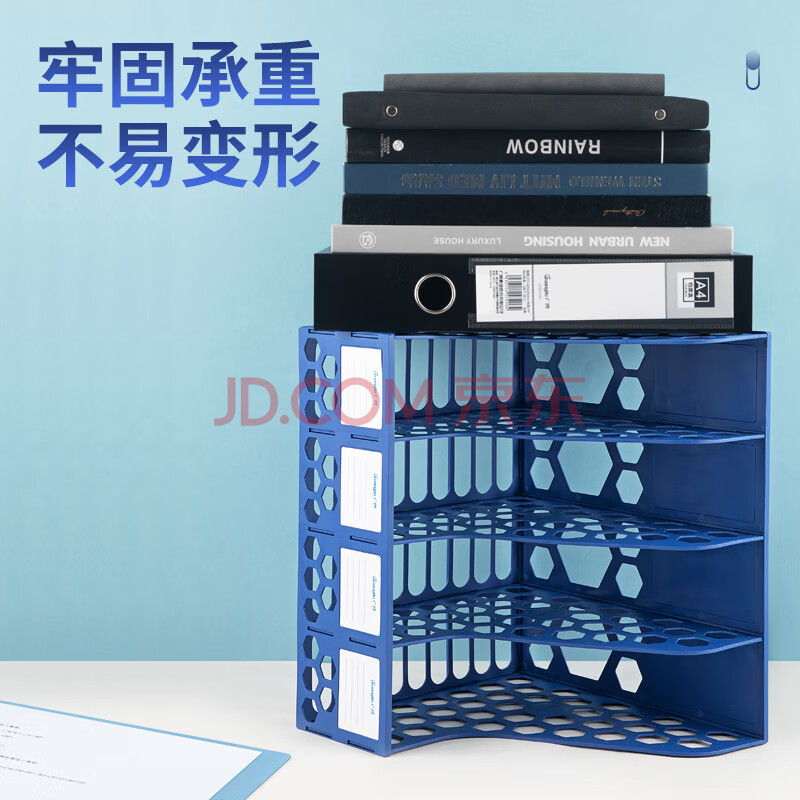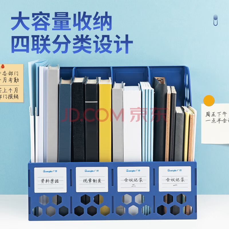 商品相册:广博(GuangBo)稳固型4联桌面文件框栏书立架档案收纳盒文件筐文件架收纳栏办公用品 蓝色 WJK9399第