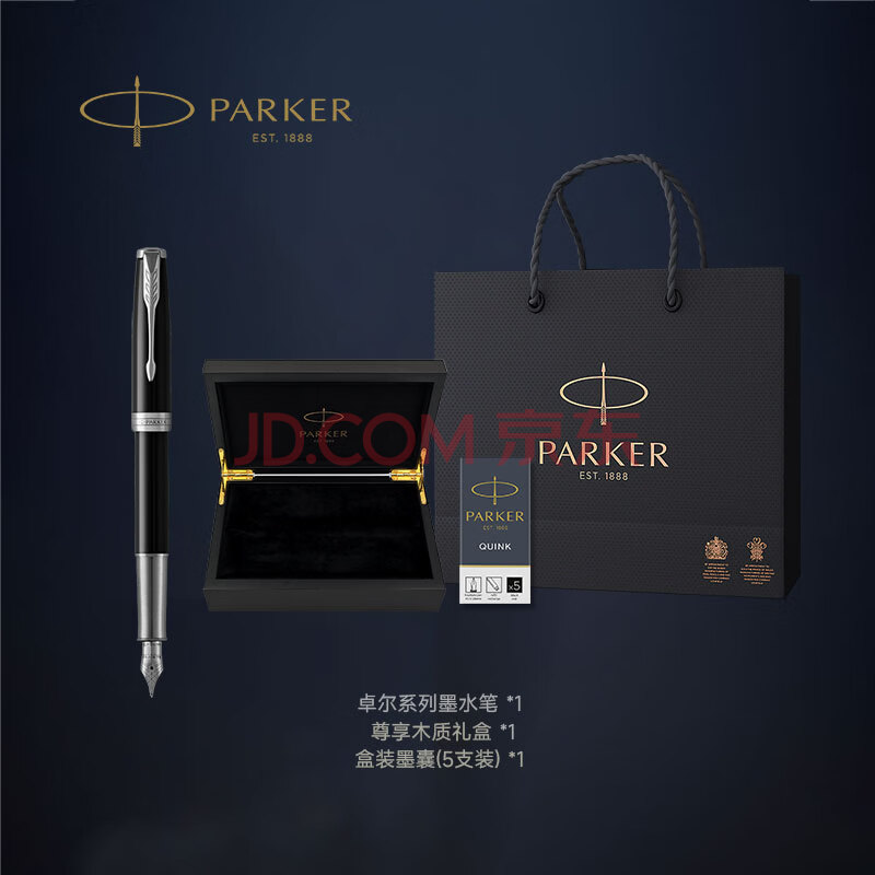 商品相册:派克(PARKER)高端钢笔 高档商务送礼生日礼物轻奢礼品 卓尔丽雅黑白夹墨水笔+木制礼盒第