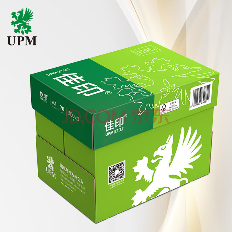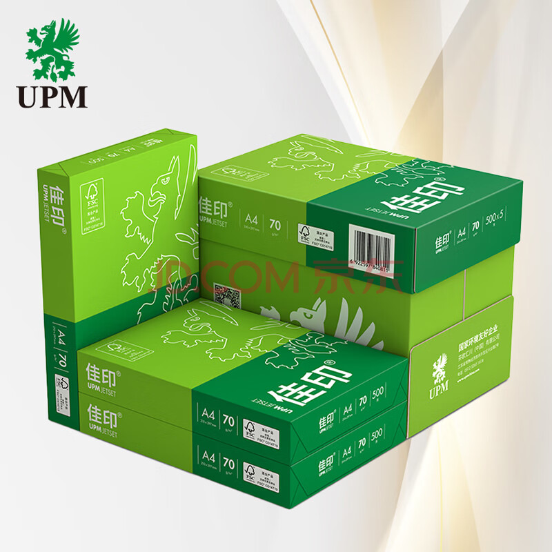商品相册:UPM佳印 A4纸打印纸 70克500张*5包一箱 全木浆复印纸 双面打印 FSC认证 整箱2500张第