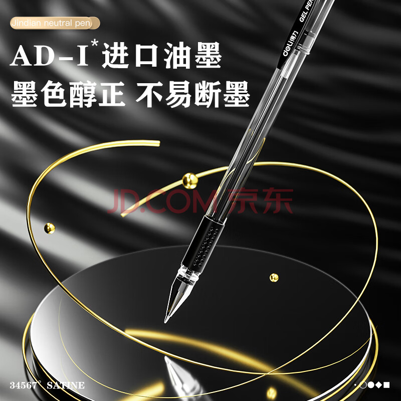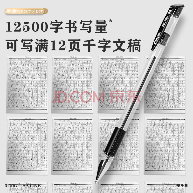商品相册:得力(deli)经典办公拔帽中性笔 0.5mm子弹头水笔签字笔 12支/盒黑色34567第