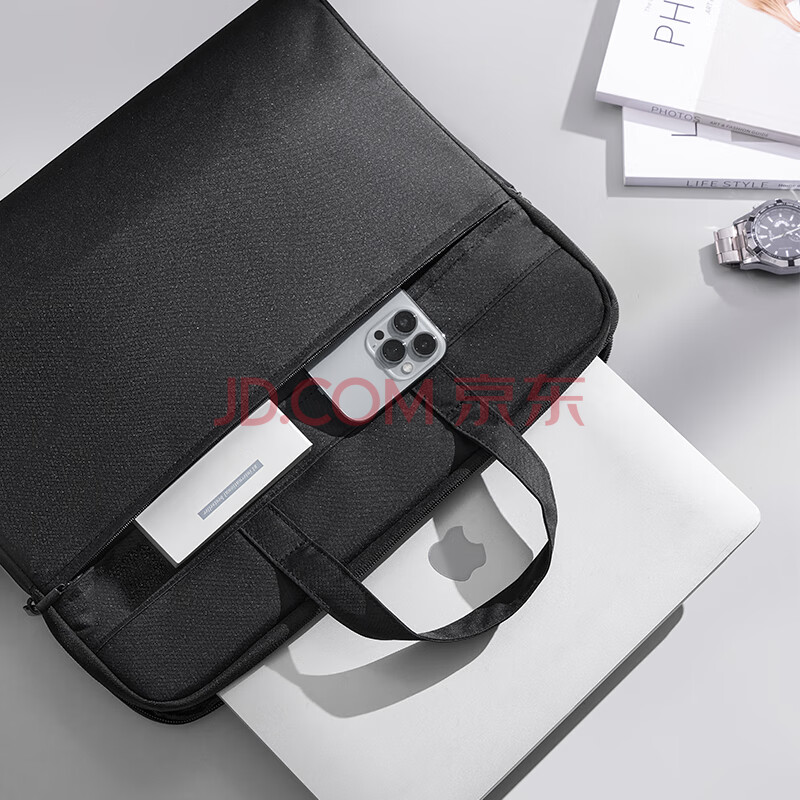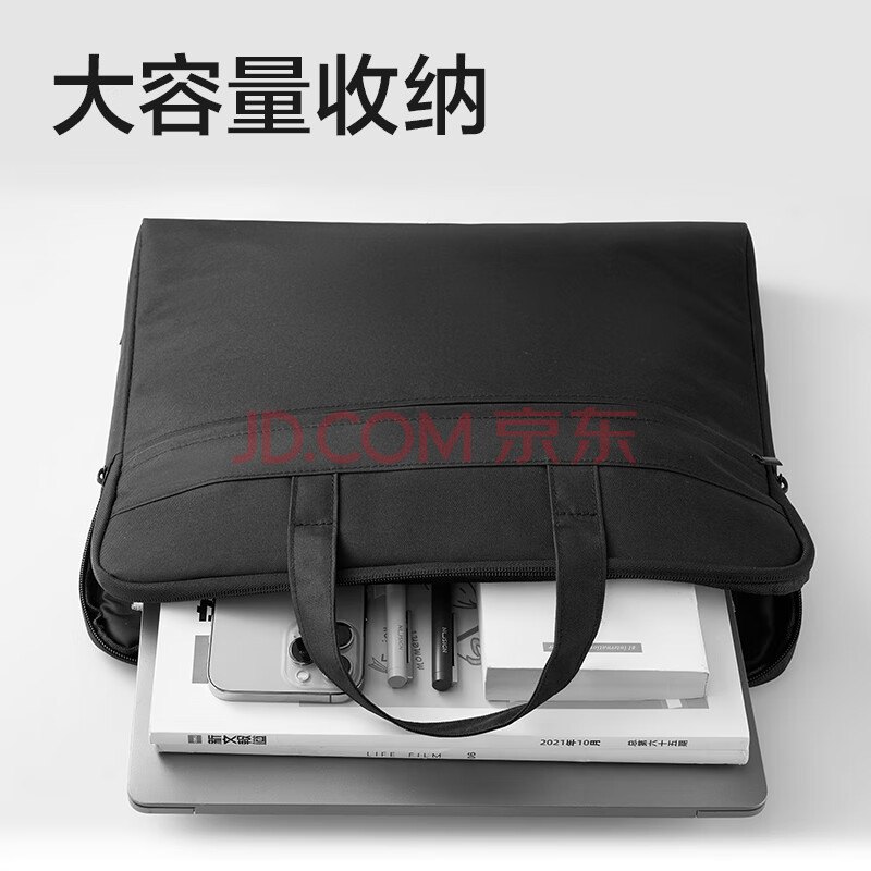 商品相册:得力(deli)【超级爆款】公文包加厚立体办公手提袋会议包事务包文件包商务拉链袋电脑包男大容量黑色BG666第