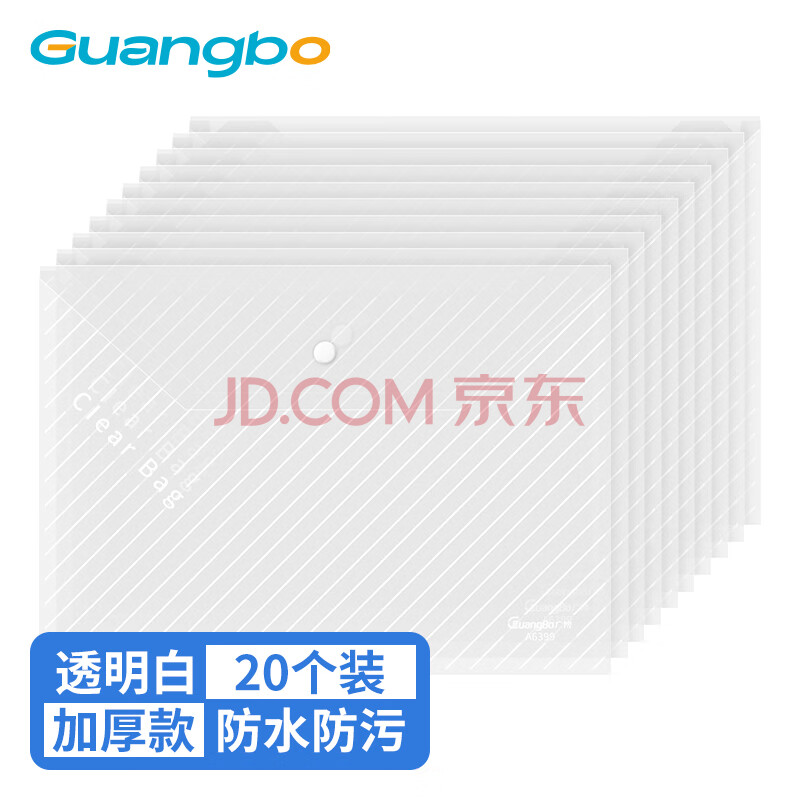 商品相册:广博(GuangBo)20个装A4按扣学生加厚透明防水文件袋试卷收纳学科分类档案袋办公用品A6399第1张/共8