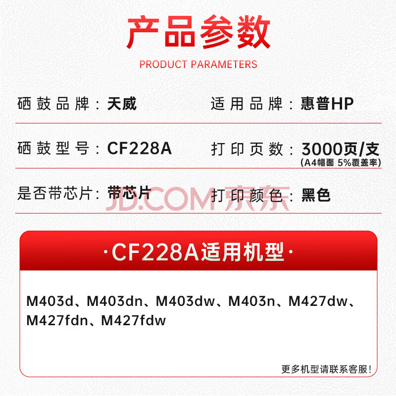 商品相册:天威CF228A硒鼓 28a适用惠普HP M403d M403dn M427dw M403dw M427fdn M427fdw M403n打印机墨盒京仓发货第