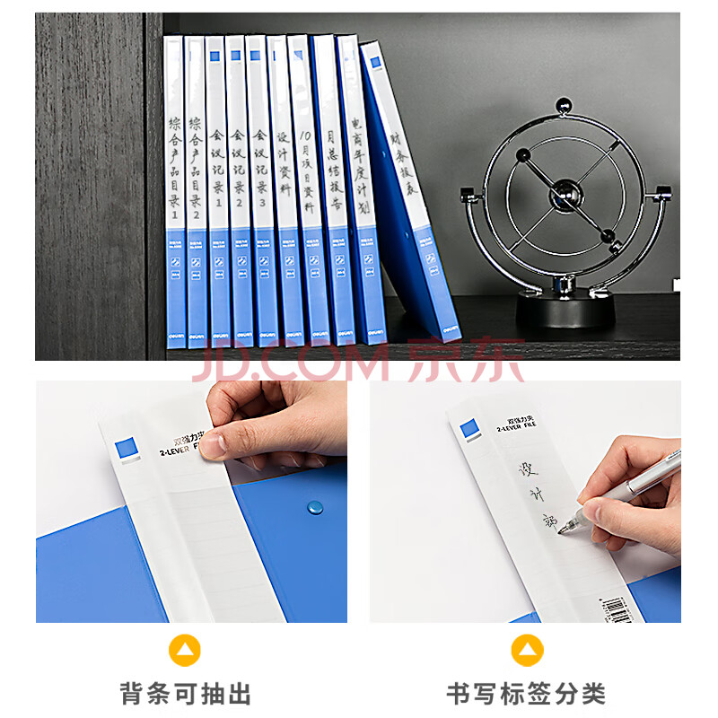 商品相册:得力(deli)A4双强力夹文件夹 加厚诗朗诵签约夹板收集试卷资料夹子合同票据档案收纳办公学习用品27019蓝第