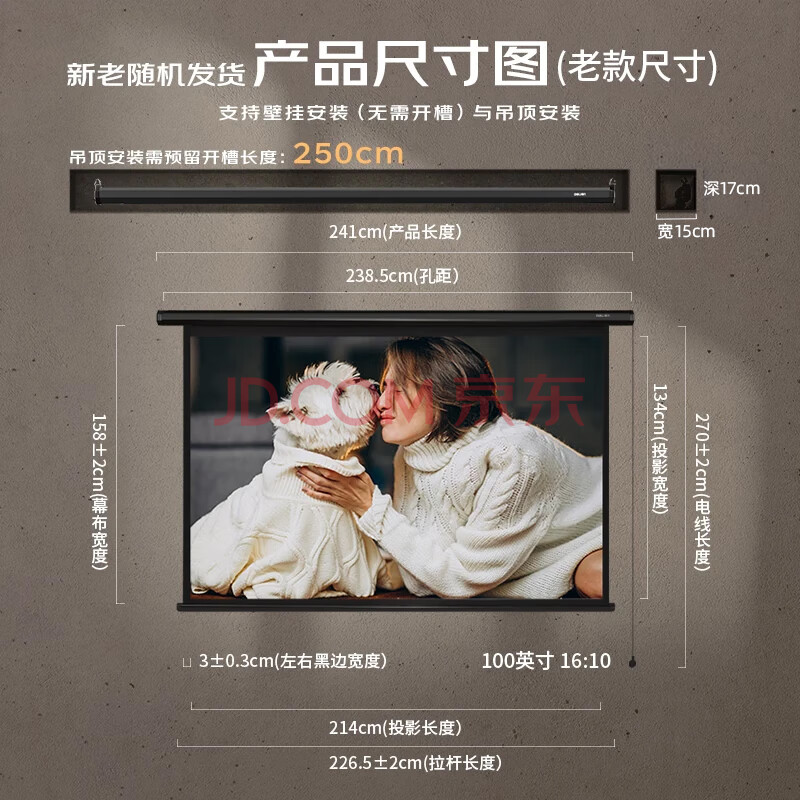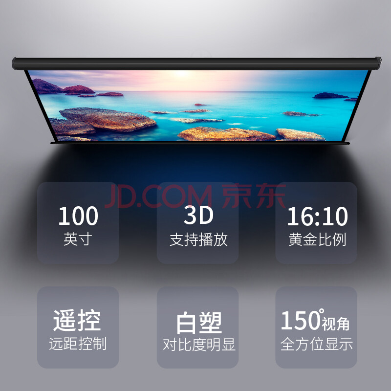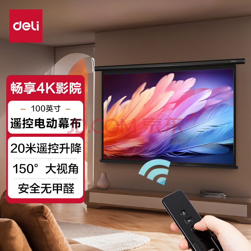 商品相册:得力(deli)100英寸 16:10(兼容16:9)遥控电动投影幕布投影布 适配坚果极米 投影仪投影幕布50442第