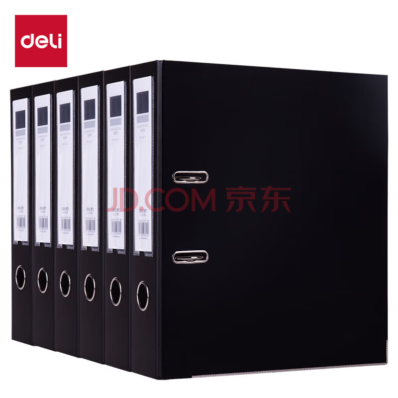 商品相册:得力(deli)A4带孔文件夹 3寸背宽加厚型欧式75mm快劳夹 6个装 黑色33180第