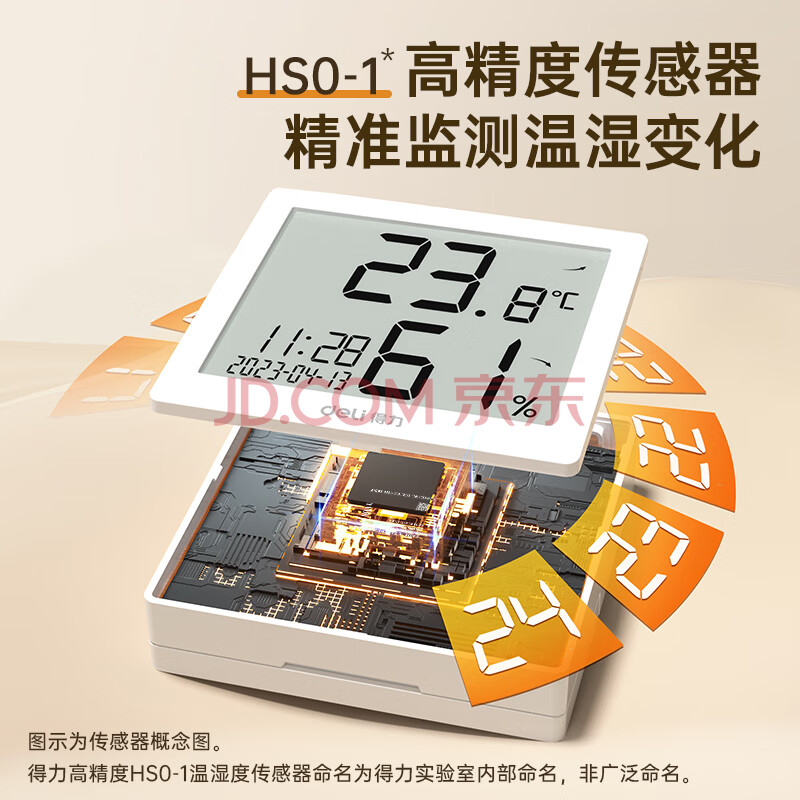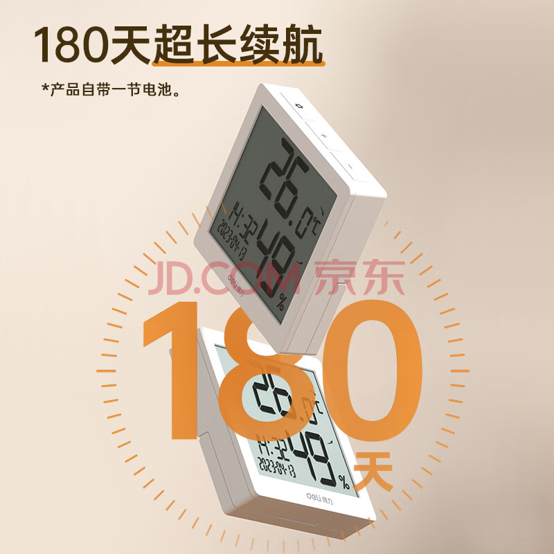 商品相册:得力(deli)室内温湿度表 LCD 电子温湿度计老人生日礼品儿童礼物带闹钟功能 婴儿房办公用品 白色8813第