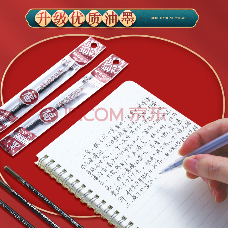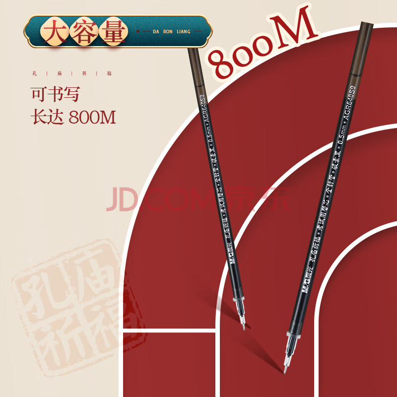 商品相册:晨光(M&G)文具0.5mm黑色中性笔芯 全针管拔盖签字笔替芯 孔庙系列学生考试水笔芯33109/Q7适用 20支/盒考试第