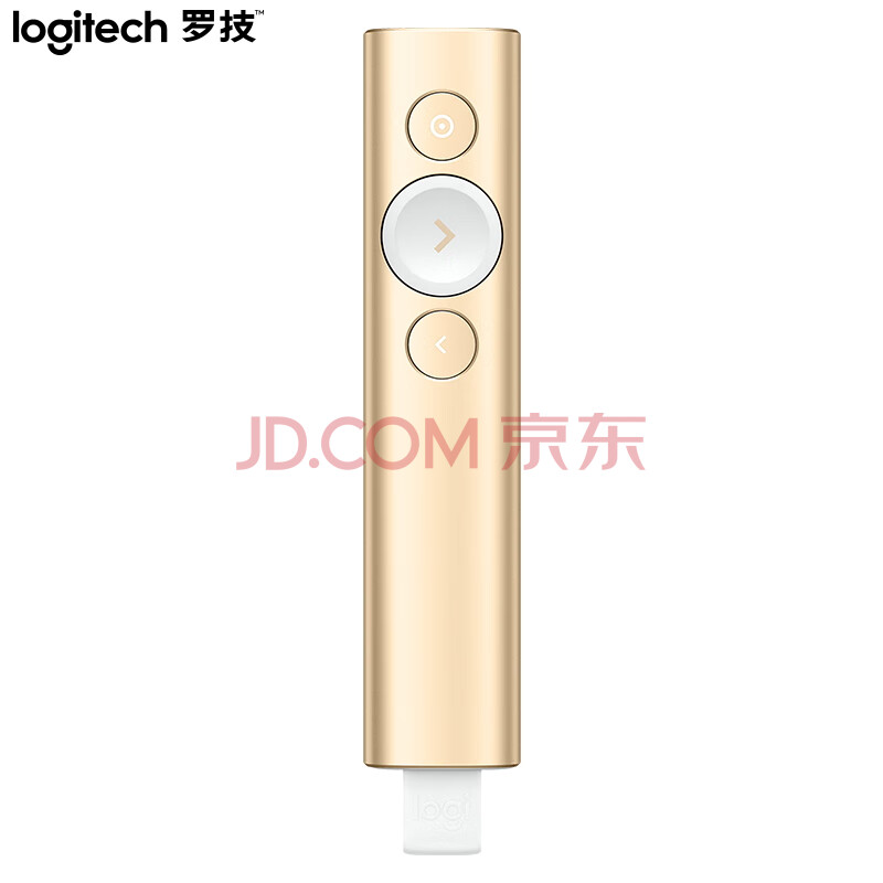商品相册:罗技(Logitech)Spotlight 无线演示器 投影笔 ppt翻页笔 演讲笔 放大聚焦液晶屏可显 (金色)第