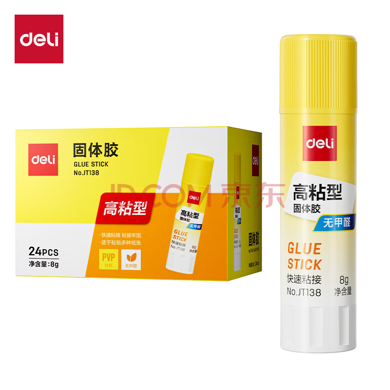 商品相册:得力(deli)(deli)8g高粘度PVP固体胶水 无甲醛快干耐用胶棒 强力粘接 学生文具 24支/盒 办公用品第