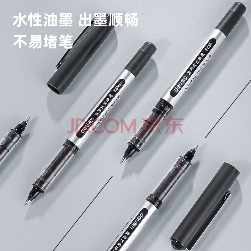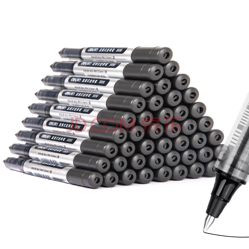 商品相册:得力(deli)(deli)直液笔 0.5mm子弹头学生签字笔 办公中性笔水笔走珠笔 办公用品 黑色 50支/盒 33475第