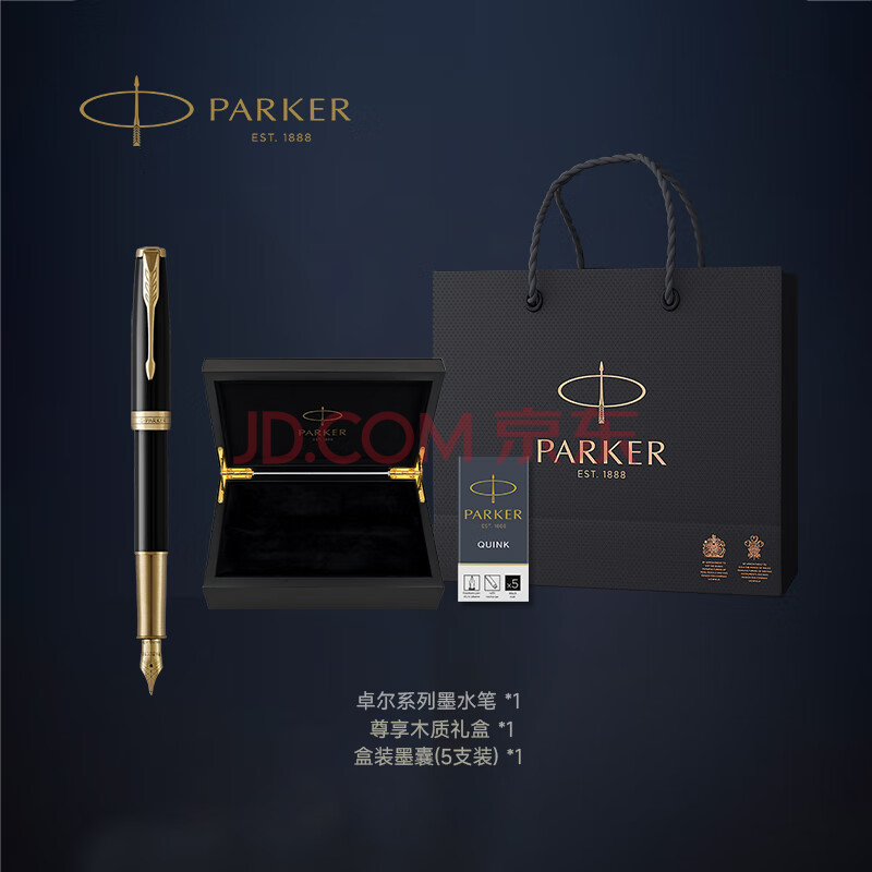 商品相册:派克(PARKER)高端钢笔 马年礼盒送礼生日礼物礼品18K金笔尖 卓尔丽雅黑金墨水笔+木制礼盒第